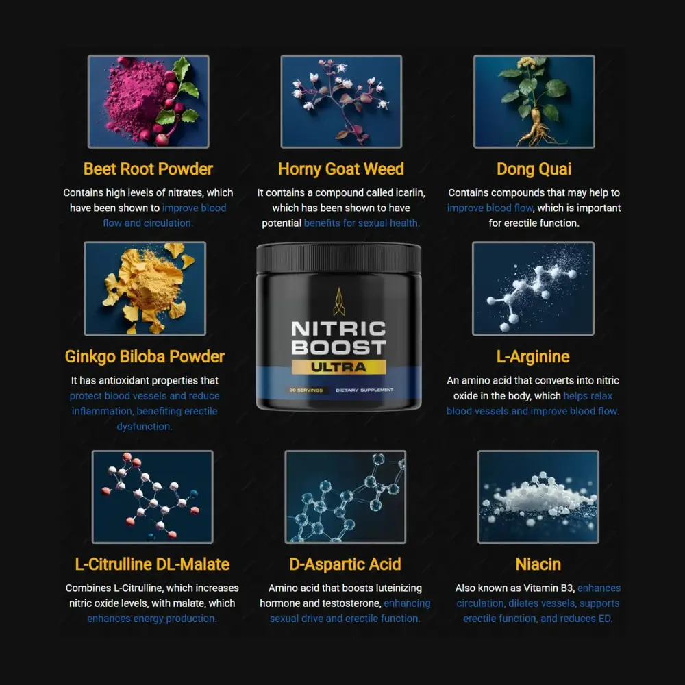 In this scenario, products like Nitric Boost Ultra emerge as a powerful and natural alternative designed specifically for men looking to improve circulation, enhance endurance, and regain their peak performance without unpleasant side effects. With cutting-edge science and carefully selected natural ingredients, Nitric Boost Ultra works by increasing nitric oxide levels, promoting better blood flow, and optimizing energy levels.